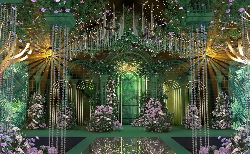 婚礼堂设计是一种专门用于举办婚礼和其他相关活动的室内设计。以下是一些关于婚礼堂设计的建议: